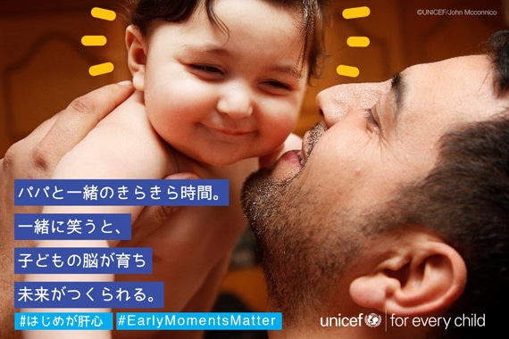 乳幼児期の子育てや、地域や社会が子どもたちに提供するケアの質は、その子の一生を、ひいては社会全体の発展も左右することが、最新の脳科学や経済学などで裏付けられています。この分野の施策の拡充や社会的な投資を求める「ECD(=Early Childhood Development:乳幼児期の子どもの発達)世界キャンペーン」を展開するユニセフは、国際社会の関心と共感を喚起するため、6月18日の父の日に向け、ソーシャルメディアを通じて、お父さんとお子さんのふれあいを収めた写真を、世界80か国以上で募集します。