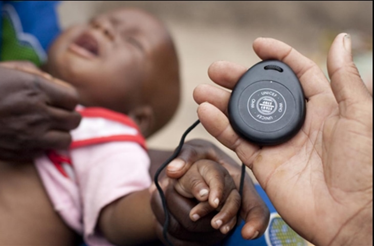 肺炎の診断に欠かせないタイマー。より簡易に正確に診断できるよう、サプライ部門主導で改良版を開発している。肺炎は5歳未満の子どもの命を奪う主な病気のひとつ。 cUNICEF |