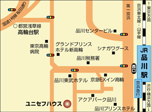 ユニセフハウス (東京都港区高輪4-6-12) 1階ホール最寄り駅 JR 品川駅西口(高輪口)より徒歩約 7 分 都営浅草線 高輪台駅より 徒歩約 7 分 アクセス |