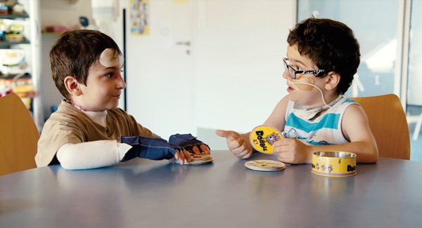 そう話すのは8歳の男の子シャルル。彼は表皮水疱症という病気で、肌が弱いため全身を包帯で覆っています。病院ではいつも親友のジェゾンと一緒で、廊下には2人の笑い声が響き渡ります。