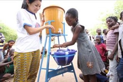 | 手洗い器を設置した学校では、子どもたちに正しい手の洗い方の研修を行いました。 |