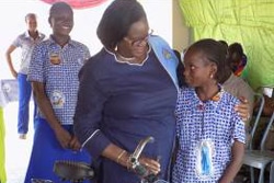 | 自宅から離れた学校に通えるように自転車を受け取る女子生徒。 |