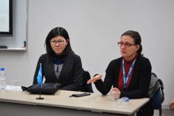報告を行ったユニセフ・南スーダン事務所に勤務するガルシアタピアさん(右)と山科さん(左)。 |