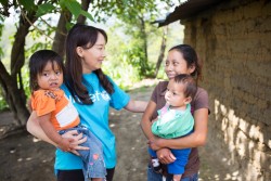 グアテマラ西部のトトニカパン県は、先住民が多く住んでおり、貧困層も多い地域です。山あいにあるチョキ村で出会ったレベッカさんには、3歳と1歳の幼い子どもがいます。1歳の子どもは下痢やおう吐が続いて、病院に連れて行くと、二人とも急性栄養不良であると判断されました。3歳の姉は一見すると元気そうに見えますが、身長は2歳児程度しかなく、発育阻害であることが分かりました。