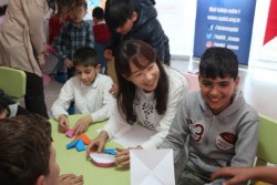 トルコ、マイ・ハピネス・サポートセンターにておりがみの授業に参加するアグネス大使 |