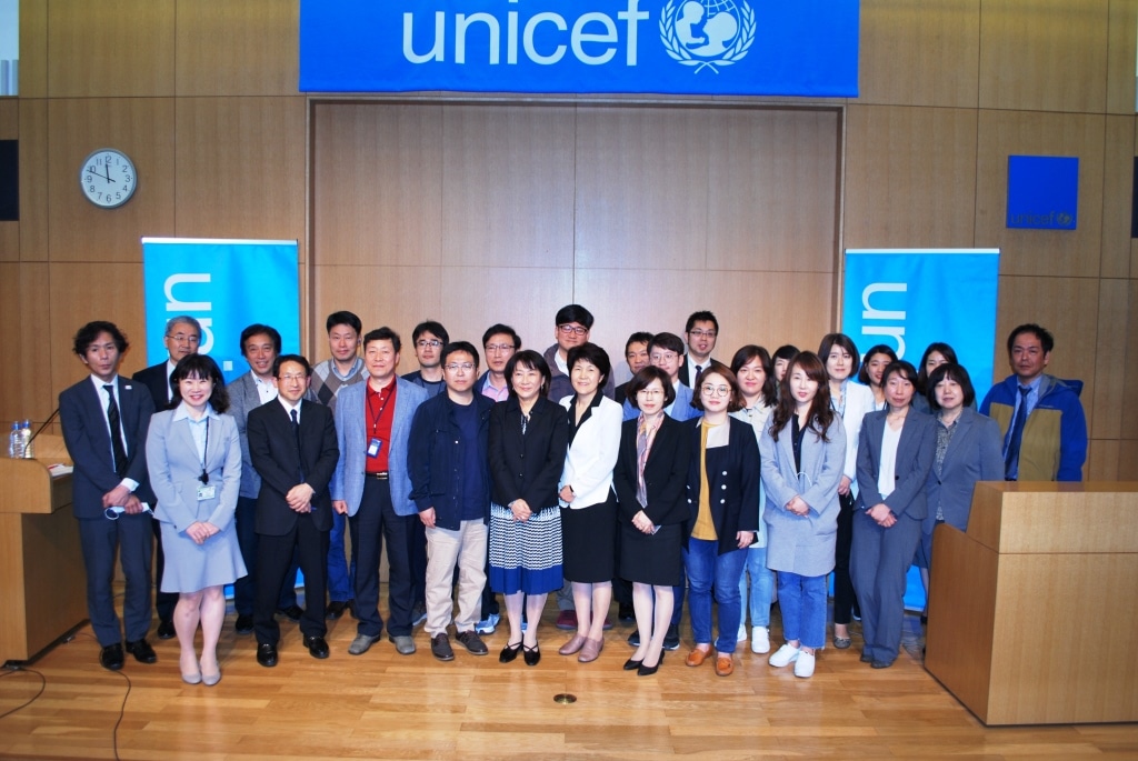 日本ユニセフ協会は4月25日(火)、「子どもにやさしいまちづくり事業(Child Friendly Cities & Communities Initiative=CFCI)」に取り組む韓国の地方自治体と、日本の地方自治体との交流会を、ユニセフハウス(東京)で開催。八王子市子どものしあわせ課の中正由紀課長による歓迎の挨拶で始まった本交流会は、子どもの権利を尊重し、子どもの社会参画を推進する子どもにやさしいまちづくり事業について、日韓の自治体の事例発表と、経験や知見に関する情報交換が行われました。