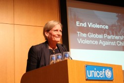 子どもに対する暴力撤廃のためのグローバル・パートナーシップ(Global Partnership to End Violence against Children)のスーザン・ビッセル事務局長。 |