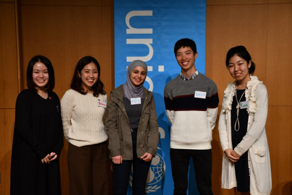 マズーン・メレハン ユニセフ親善大使と、東京大学の学生たち(2018年3月、ユニセフハウス) |