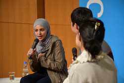 ユニセフハウスでユースと対話するマズーン・メレハン ユニセフ親善大使 |