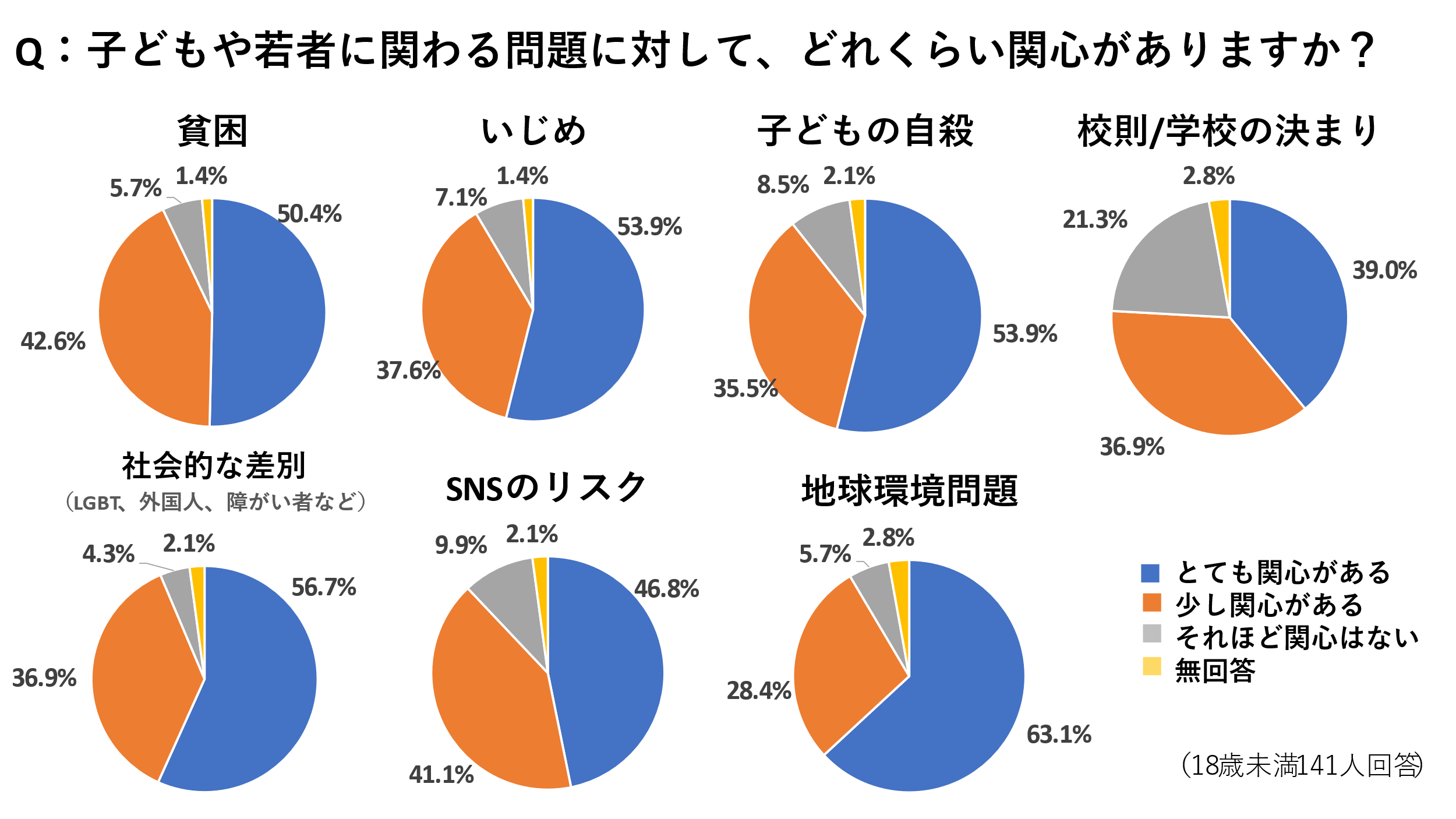 イベントに先立ち、登壇する国会議員の方々などに届けるため、オンラインで子どもたちから意見を募集しました(11/2~11/20、18歳未満からの回答数141 ※2021年11月19日時点集計)。