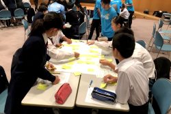 各班には小学生から高校生までが混ざっていましたが、高校生も、小学生の意見を対等に聞き、話しにくそうなときは質問しながら発言を促す姿がありました。その中で、小学生も臆することなく率直に発言し、他の人の意見を聴きつつ自分の意見を整理しながら参加していました。
