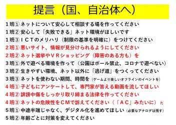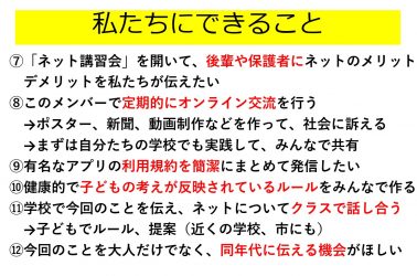・ネットルールを学校全体(先生と生徒で一緒に)で作って平等に守りたい