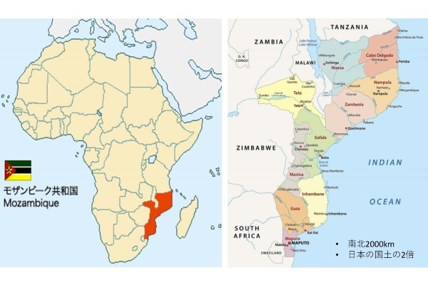 アフリカ南東部に位置するモザンビークは、日本の2倍の国土を有し、それは南北2,000キロに伸びています。主要産業は農業で、主な農産物はとうもろこしですが、近年は豊富な鉱物資源を活用した資源開発も活発に行われています。また、モザンビークの国名は、同国唯一の世界遺産(1991年登録)であるモザンビーク島に由来します。