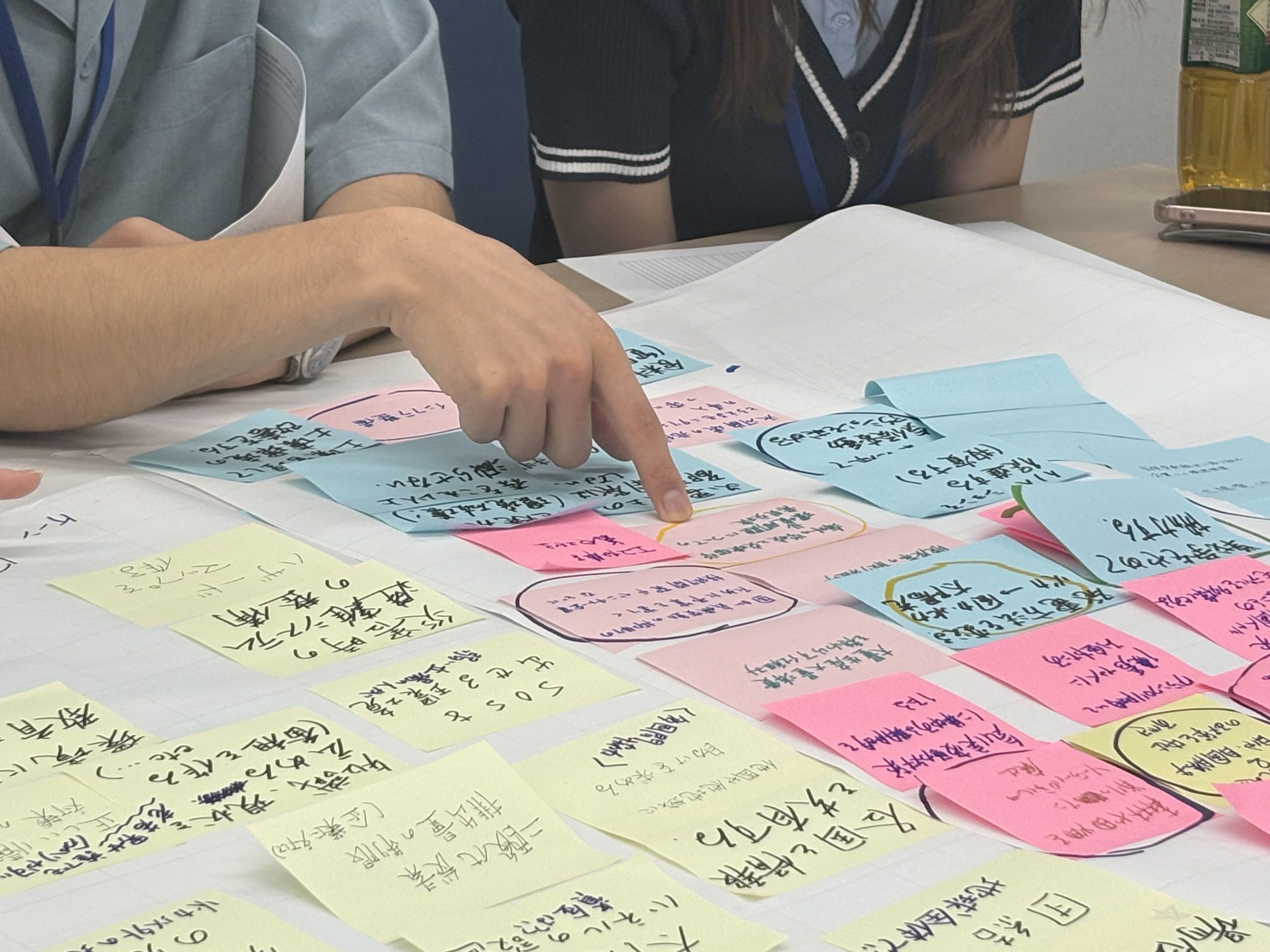 「あつすぎてそとであそべない」「ぼうしやすいとうがぜったいひつよう、わすれない」といった小学生の身近で切実な声から、「国と社会は、皆にも気候変化の深刻さを気付かせるための適切な教育を行う必要がある」といった世界に目を向けた若者の意見まで、一つひとつの言葉に真剣に向き合う皆さん。回答が印刷された手元の紙は、あっという間にマーカーが引かれたキーワードでいっぱいになりました。