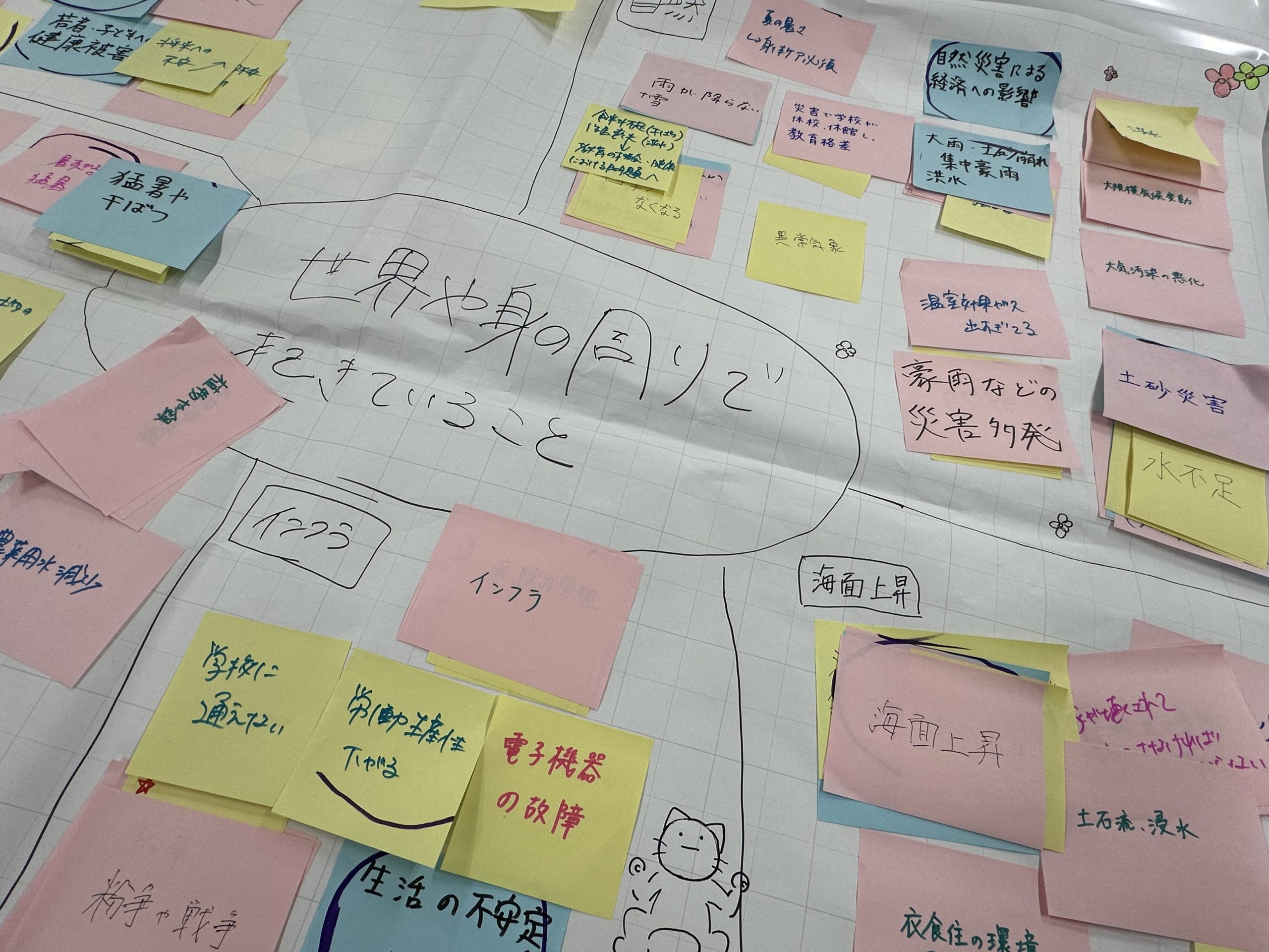 日本ユニセフ協会は、子どもや若者が気候変動を学び、考え、声を上げるためのプロジェクト「ユニセフ気候変動アクション2025」を展開しています。未来のために必要な気候変動対策について、特設サイトや公式SNS、書面を通じて、子ども・若者を中心に全国から寄せられた意見は、311件にのぼりました。国連気候変動枠組条約第30回締約国会議(COP30)に届ける提言書として、これらの意見を、子ども・若者たち自身がワークショップ形式でとりまとめ、成文化する作業を、8月28日(木)にユニセフハウスで行いました。