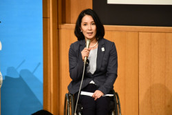 パラリンピアン(1998年長野)のマセソン美季氏(日本財団パラリンピックサポートセンター)は、マンデラ元南アフリカ大統領の言葉を引用しつつ、スポーツには世界を変える力、「それまで絶望しかなかったところにさえ、希望の火をともす力」がある、と訴えました。そして、突然の交通事故で車椅子の生活を余儀なくされることとなったご自身の体験を紹介され、パラリンピックスポーツは、「できないことではなく、できることに目を向けることの大切さ」「物の見方を変えられれば、人生はもっと豊かになる」ことなどを教えてくれた、と語りました。