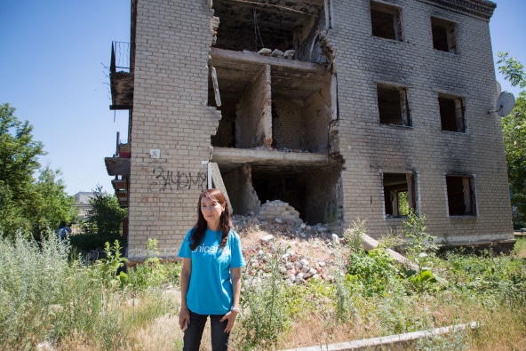 ユニセフ・アジア親善大使のアグネス・チャンさんは今年、6月16日から23日の日程でウクライナを訪問。光の当たらない子どもたちの声を届けるために、紛争が続く東部のコンタクト・ライン周辺を訪れ、学校、心理ケアセンター、病院、家庭などを訪問しました。