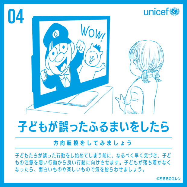 本来、守るべき子どもたちを傷つけないために、私たち一人ひとりにできることはきっとあります。こうした状況の中で、子どもたちとどう向き合うべきか。ユニセフでは世界中の保護者に対して、子育てのヒントを紹介しています。