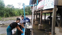 | プロジェクトで導入された集団手洗い設備で手洗いをする母と子 |