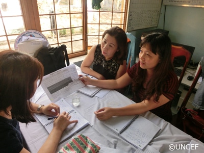 そのような中、インターンでお世話になったUNICEFベトナム事務所のChild Survival and Development Sectionでは、妊産婦、新生児および乳児の死亡数を減らすことを目標に、対象となる4つの省で医療従事者の育成とコミュニティでの啓発活動を通じて、適切な母子保健サービスが届けられるよう事業を展開しています。私の主な役割は、2015年から始まったこの事業の進捗と今後の課題についてデータを収集・分析し、資金提供側の民間企業に対して報告をするモニタリング業務でした。そのため、保健省の専門家と一緒に省のリプロダクティブヘルスセンターや県、区の病院を訪問し、活動状況の聞き取りや、院内の設備環境、研修知識やスキルの確認調査を行いました。視察を通じて、地理的に医療が届きにくくインフラ整備が十分とは言えない地域でも、基礎的ケアの内容を定め※2研修と指導によりお産ケアを浸透させる仕組みについて学びました。