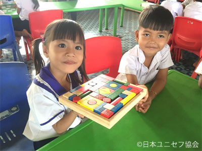 ユニセフが支援するECD Kitで遊びながら学ぶ子どもたち