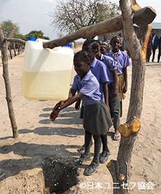 ナミビアは水不足のための手洗いが不十分であることや、屋外排泄による衛生問題が深刻で、これらに起因するE型肝炎(Hepatitis E)を発症する人が多くいました。この問題を解決するために、小学校に手洗いのためティッピー・タップ(水をいれたポリタンクを糸で結び、手洗いができるようにした設備)が配置されました。現在、子供たちは手洗いの歌を歌いながらティッピー・タップで手を洗っています。村でも村人たちが自分たちで設置した屋外トイレによって、屋外排泄を完全に無くしました。ユニセフや日本のサポートで、厳しい状況にありながらもコミュニティ自身が、子供たちのために公衆衛生の向上をしていく姿を目の当たりにして、コミュニティのレジリエンスと決意に感動しました。外からの業者がトイレなどをコミュニティに作ってあげた場合、使ってもらえず物置に使われたり、一度壊れたらそのままという場合が多いと聞きます。外から与えられるのではなく、このような活動をコミュニティがリードすることで、村人のモチベーションが上がりエンパワーメントにもなると学びました。