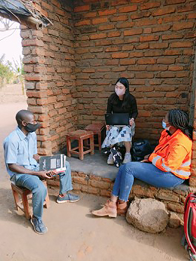 リロングウェ県の農村部で、NGO職員の方の通訳を介してコミュニティボランティアの方にインタビューを行いました。