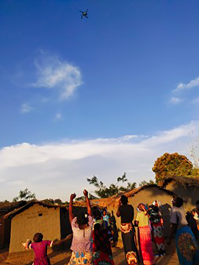 世界母乳育児週間のためにドローンで撮影しているときの写真。皆さん興奮していました。