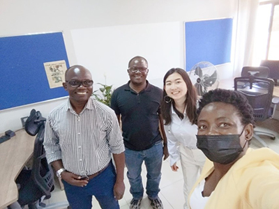 UNICEF職員の方々との写真(写真撮影時のみマスクを外しています)。