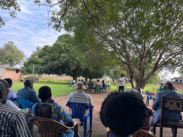 アジュマニ県で参加したイベントで、どのようにジェンダーに基づく暴力への取り組みを行っているのか劇を通じて説明が行われている様子です。