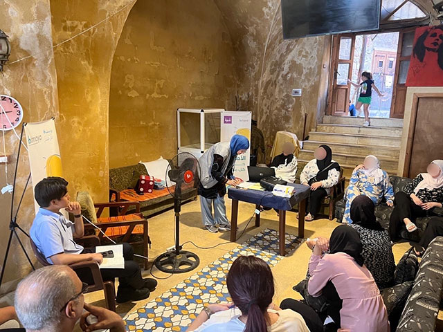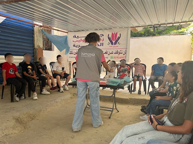 パレスチナ難民キャンプにて。家庭内暴力を発見・報告する訓練をしています。