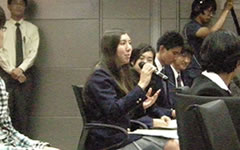 参加者はアフリカからガーナ、タンザニア、南アフリカ、セネガルの4カ国と、アジアから日本、韓国、ベトナムの3カ国の若者。まず各国がTICAD IVで話し合われる優先課題に関連するテーマについての取り組みを発表、それについて各国が質問します。J8最終選考会参加チームも積極的に自分たちの意見を発言し、さまざまな意見が飛び交いました。