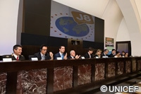 この日、討議の初日を迎え、テーマⅠ:経済危機下における子どもの権利についての会議が始まりました。 また、4つ目のテーマについての提案が出され、「教育」に決定しました。
