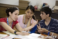J8参加国から1人ずつ選ばれた代表の子どもたちがG8サミットの会場ラクイラへ赴き、G8首脳陣との直接会合に臨みました。また、ローマに残った他の参加者たちは、イタリア下院議会でJ8宣言を発表しました。午後には、障害児の支援団体であるTender to Nave Italia や貧困問題の解決に取り組んでいる市民団体組織であるGCAPから専門家を迎えて、J8ローマ宣言やフォローアップ活動について意見交換を行いました。