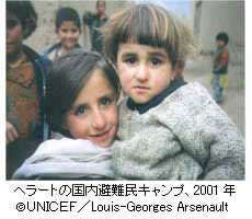 その後、米国での連続テロ事件の影響により、さらに多くの国内避難民、難民が発生し、状況は非常に厳しくなっています。アフガニスタン国内のユニセフのプログラムは、ローカルスタッフによって継続されており、(財)日本ユニセフ協会は9月20日よりアフガン難民緊急募金の受付を開始いたしました。