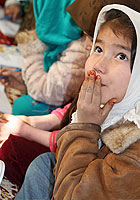 | ユニセフの支援する学習センターで学ぶ女の子。アフガニスタンではいまだに女性の6人に5人が文字を読むことができない。 |