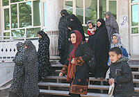 | アフガニスタン南西部のヘラ−トで、2011年3月8日の国際女性デーを祝うセレモニーに出席する、女性の人権の唱道者であるスラヤ・パクザドさん(中央) |