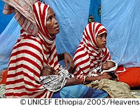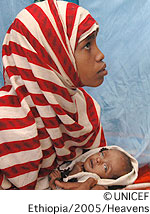 高い栄養不良率もしくは消耗症に加え、はしかの予防接種率の低さとがあいまって、はしかの大発生の可能性がいよいよ現実のものとなっています。栄養不良で体力の弱まっている子どもたちは様々な感染症にかかる危険性がきわめて高く、なかでもはしかはもっとも感染力が高く、予防接種を受けていない人々の間で急速に広まり、命を脅かす病気の一つです。たとえば、2000年に発生した干ばつでは、エチオピアの5歳未満児の死因の22%がはしかによるものでした。