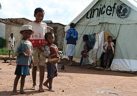 ユニセフの支援チームが設置した最初のテントは、被災した人々にとても喜ばれました。「雨の下で寝なくてもよくなると思うと、僕も、弟も妹も、とってもうれしかったし、驚いたよ」マーチンの長男のタヒリはうれしそうに言います。 ユニセフは、衛生状態を維持し、下痢などの病気を予防するために、浄水剤や貯水用ポリタンク、石鹸も提供しました。 ユニセフが提供したテントを避難所として生活する人の数は5,400人、首都の被災者は推定1万人で、今後も増え続ける見込みです。集中豪雨はまだ続いています。1959年以降、首都にこのような豪雨が降ったことはありませんでした。水位は限界を超えています。