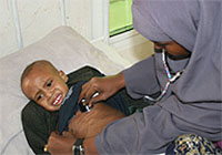 命をつなぐ支援が滞ってしまうかも知れない・・・ソマリアの子どもたち400万人にとって非常に過酷な現実です。1991年以来、政府が機能しない状況が続くこの国では、2世代にわたり、「子ども時代」が戦争や飢饉、病気によって苛まれました。国際社会の支援だけが、彼らの命をつないできたのです。 栄養不良と病気の子どもを診て回り、よい医薬品が手に入らないときは別の治療法で対象しようとしながら、アーメッドさんは国際社会の援助が来ることを祈っているといいます。 「栄養不良の子どもはどんどん増えています。全ての子どもを助けようと努力していますが、必要なことが全てできるわけではありません。ソマリアの女性や赤ちゃんには援助が必要なのです。一日でも早く、援助が必要なのです。」アーメッドさんは語ります。 |