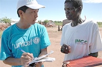 ユニセフの緊急支援活動は、保健・栄養、水と衛生、教育、そして、子どもの保護といった様々な分野にわたります。その中でも、教育と子どもの保護を担当する私は、政府の緊急支援部隊の他の人道支援団体と協力し、ムタララ周辺にある避難民キャンプで被害状況を調査し始めました。キャンプ内にどれくらいの子どもがいるか確認し1人1人登録をする作業をはじめ、学校施設の再建や教材の提供といったニーズがあるか、先生が職場復帰できる状況にあるかどうか、孤児や親とはぐれてしまった子どもがいないか、子どもや女性に対する暴力・虐待が報告されていないか、キャンプ内に適切な水汲み場やトイレがあるかといったことを、手分けして20近くあるすべてのキャンプ内で行っていきます。交通手段が完全に断たれてしまった地域へは、ヘリコプターで飛び、被害状況を調査しました。