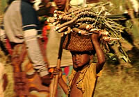 | マダガスカル南部の深刻な干ばつの影響を受けた地域で、作物を運ぶ子ども。この地域の子どもたちは栄養不良に苦しめられている。 |