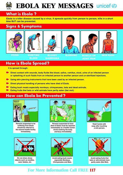 | ユニセフ・シエラレオネ事務所が配布したエボラ啓発ポスター。 |