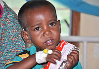 | 栄養不良によりケニア・ダダーブにある病院に入院し、現在、自分で食べることができるようになったモハメッドちゃん。 |