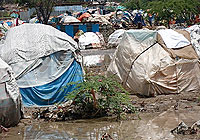 | モガディシュの国内避難民キャンプでの暮らしを余儀なくされているソマリアの人々は、待ちわびた雨にもかかわらず、その雨によって、再び避難を強いられた。 |