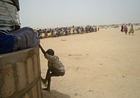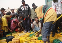 | 飲料水の配付が行われているファサラ避難キャンプ(モーリタニア) |