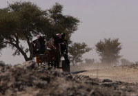| マリのタコ村の乾燥した大地を通る馬車。この地域では年に1度しか雨が降らず、昨年は降らなかった。 |