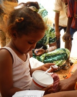 | 栄養補助食を食べるモーリタニアの女の子。 |