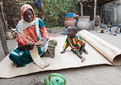 | 草で編んだ手作りの品物を見せるイッサさん。アドゥム君が病気のとき、母親のゼイナバ・イッサさんは、栄養治療センターに連れて行きました。そこでは、再発を予防する方法も学びました。 |