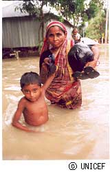 2004年7月から8月中旬にかけて、バングラデシュは98年以来最悪の洪水被害に見舞われました。64ある行政区のうち39地区が被害を受け、政府の最近の調べでは、被災者は3500万人を超えていると見られています。